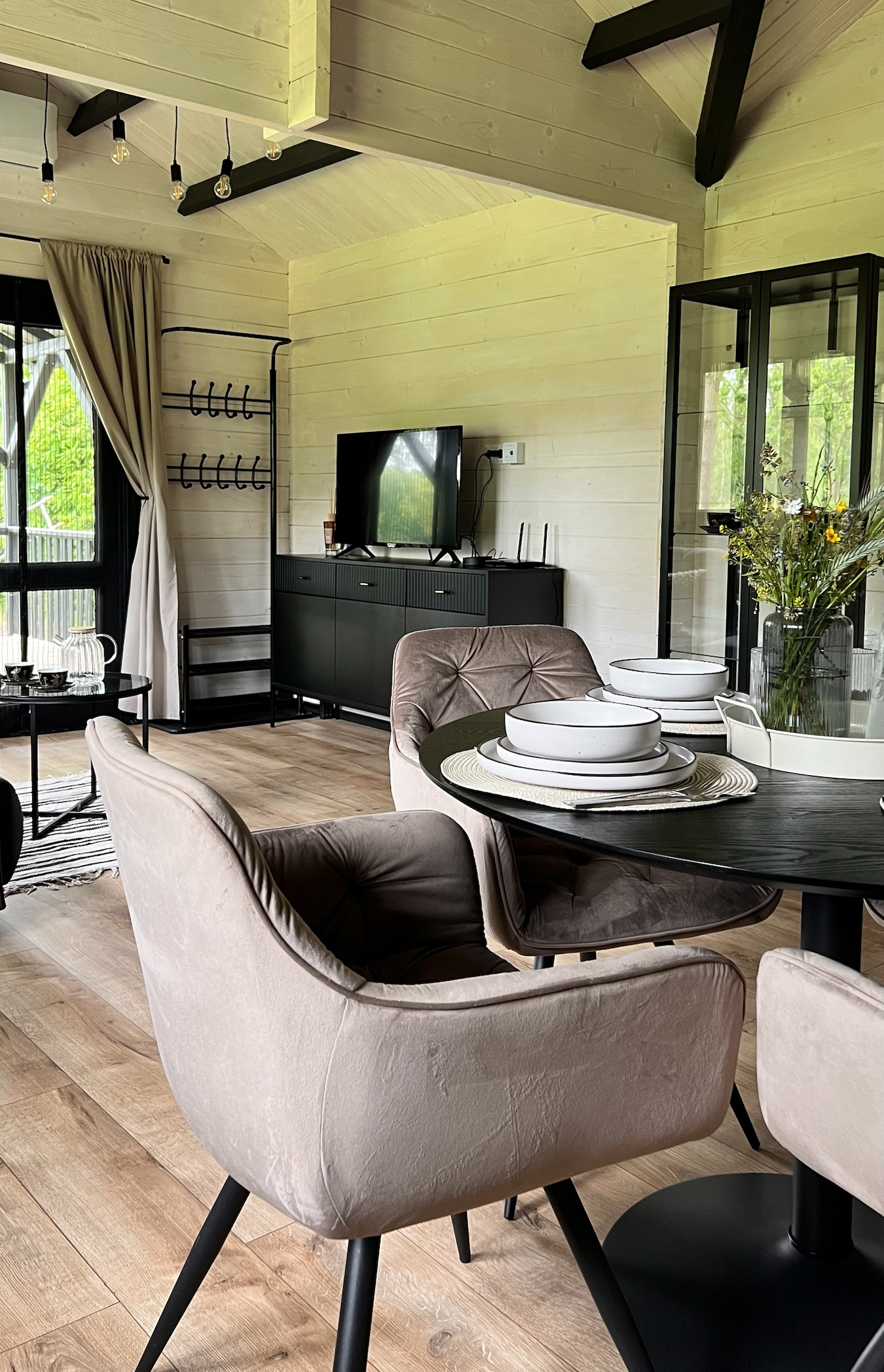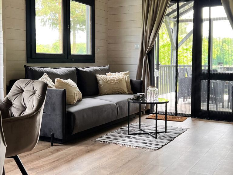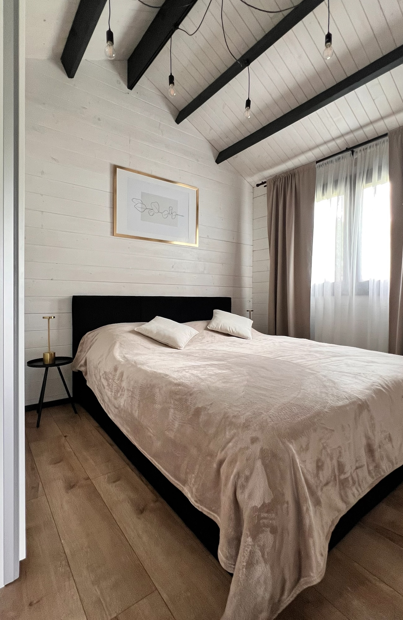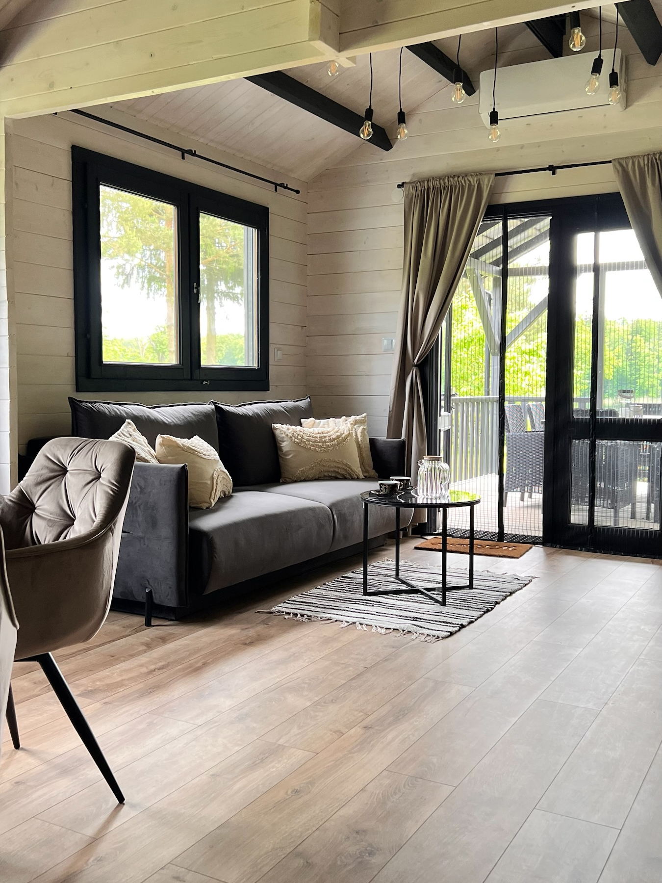 Wnętrze domku „u Ani” łączy przytulny klimat z nowoczesnym komfortem. Jasne, ciepłe wnętrza sprawiają, że od razu czujesz się jak u siebie.